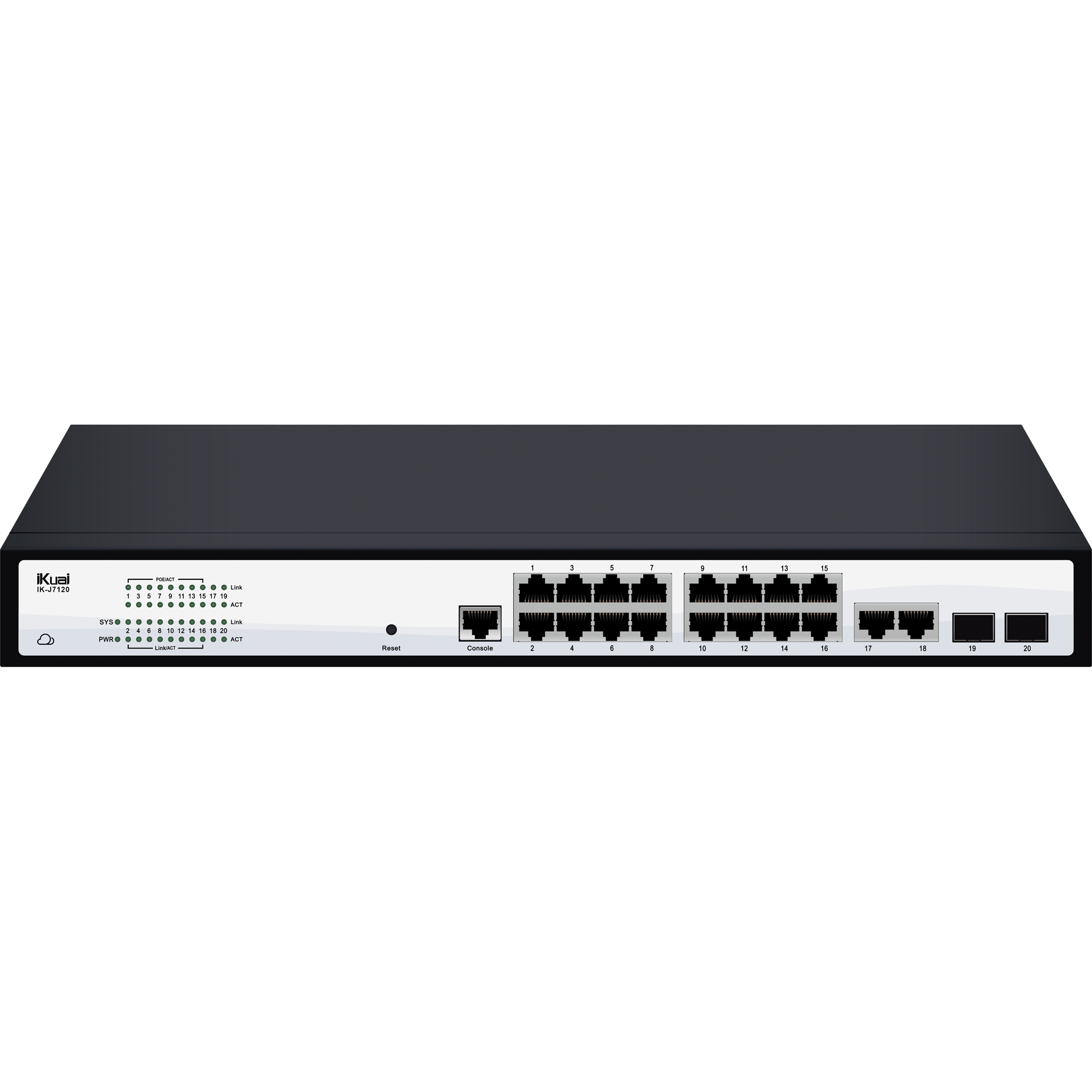 IK-J7120提供18個1000Mbps RJ45端口和2個1000Mbps SFP端口,所有端口支持線速轉發,保證所有端口高速轉發數據
